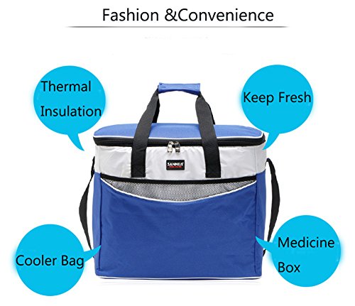 WGPFBAG 34L Large Insulated Lunch Bag for Women and Men, Soft Leakproof Liner And With Adjustable Strap (Blue)