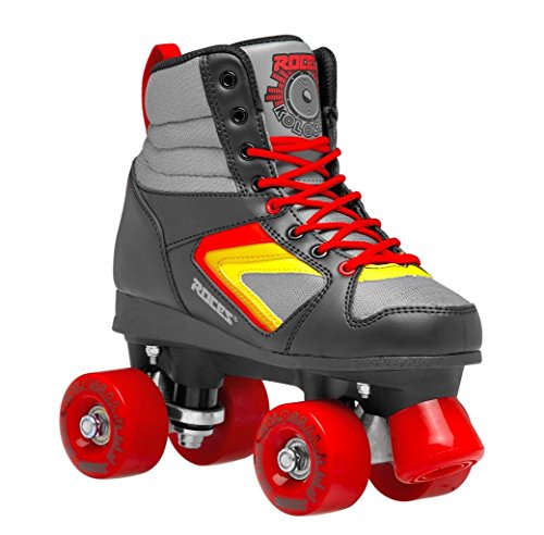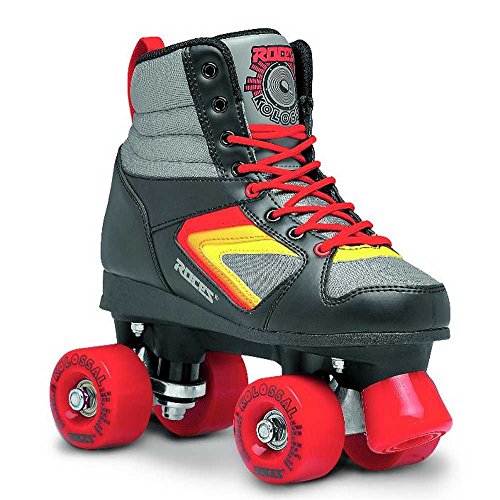 Studio : Roces Publisher : Roces Binding : Misc. Product Description Roces Unisex Kolossal Fitness Quad Skates Roller Skates Black/Gray/Red 550041. The KOLOSSAL Roller skate. This Roces quad is designed in Italy with a classic sneaker look. With the bright and bold colors you will turn heads. Vinyl Upper Equipped with 58x32 mm cast PU wheels, aluminum trucks and ABEC 7 bearings. This style has a lace up front with black fabric lining. This quad skates as good as it looks. Manufacture One Year Warranty. Color: Black/Gray/Red/Yellow. 550041 0