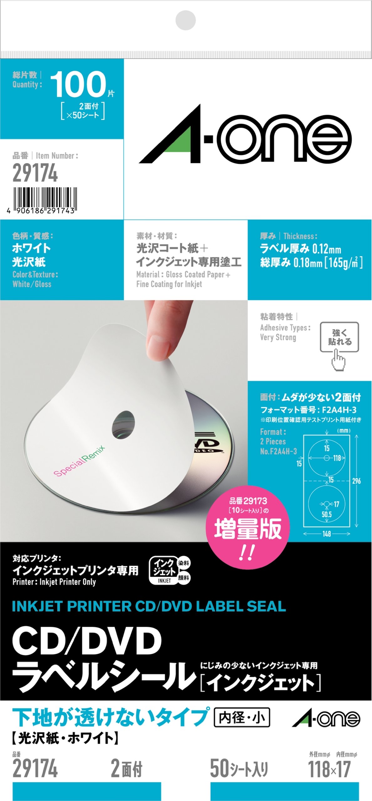 type glossy paper white-One (A-one) CD / DVD label seal [inkjet] foundation is not transparent A4 size variation two-sided inner diameter Small 50 sheets (100 sheets) 29 174 (japan import)