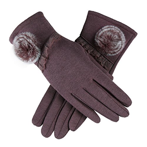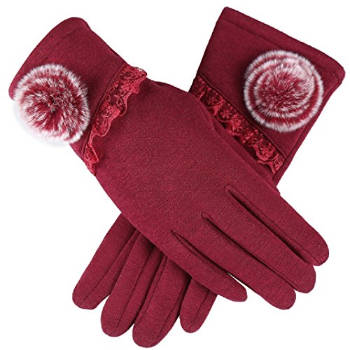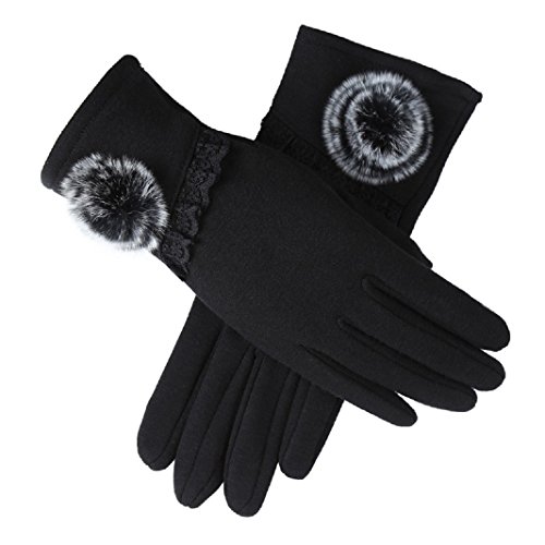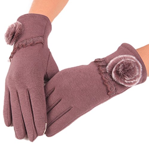 (FUNNY365)/Accessories/Cold Weather Accessories/DIRECT FROM USA/FUNNY365 Women's Gloves Cotton Fleece Dressy Pompom Thermal Lining Mittens