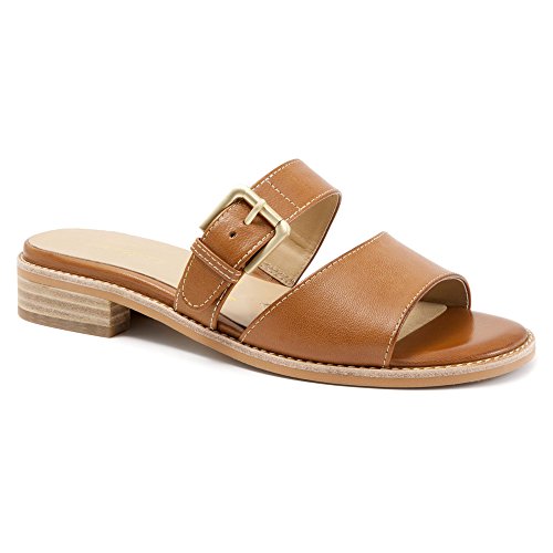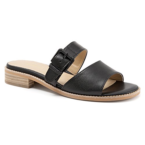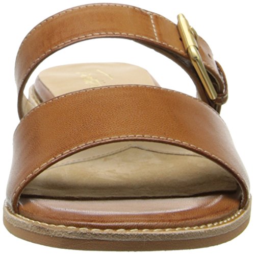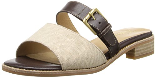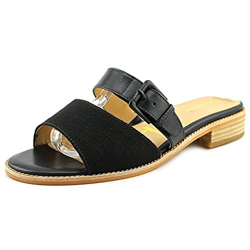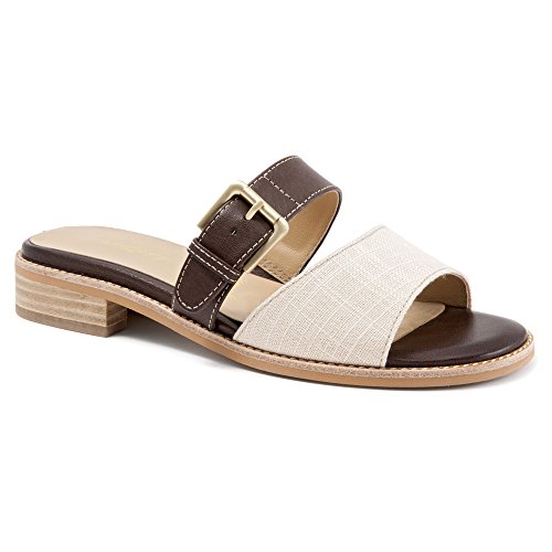 Uncomplicate your warm-weather style in the Trotters Billie sandal. Dressing up or down with ease, this women's two-band slide sandal has a leather or leather-and-linen upper with a leather-lined interior to absorb moisture; the adjustable instep strap includes elastic goring for flex. A touch of flattering elevation is provided by the stacked heel. Rely on the leather-look synthetic sole to carry you safely to your destination.Feature