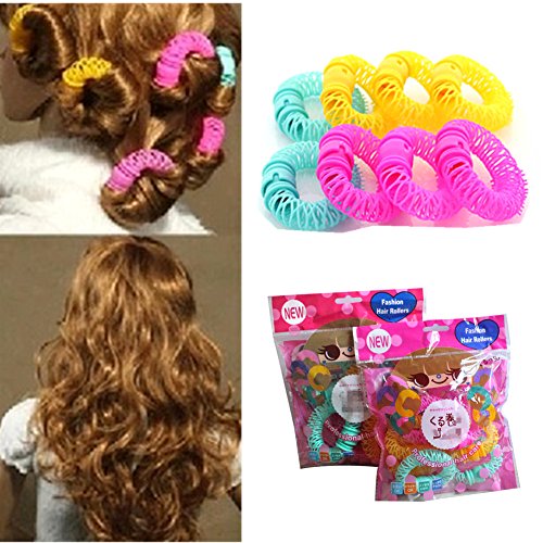 Wed2BB 12pcs Magic Doughnut Donut Sticks Rollers Circle Spiral Plastic Hair Curly Curler Curl Roll Ringlets Wave Hairdressing Care Hairstyle Maker DIY Hair Styling Tool