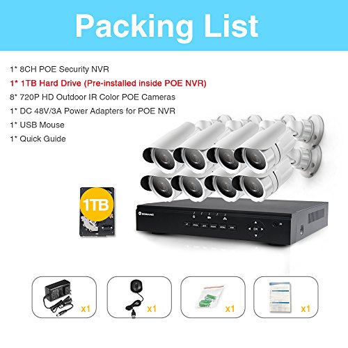 -. Title : 8CH 720P POE NVR Security Camera System with 1TB Hard Drive (8) 1280X720 High Resolution CCTV IP Surveillance Cameras