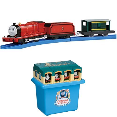 プラレール TS-05 ジェームスとプラレール きかんしゃトーマス たためるトーマス機関庫のセット。