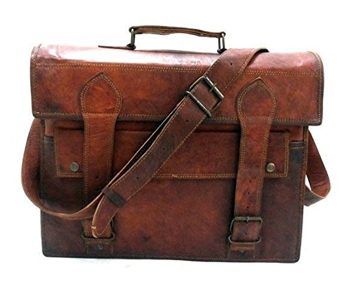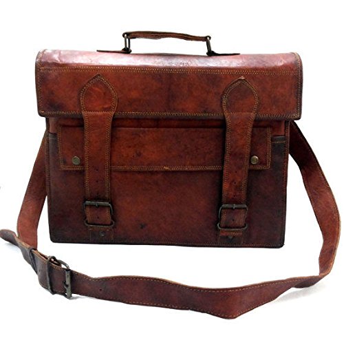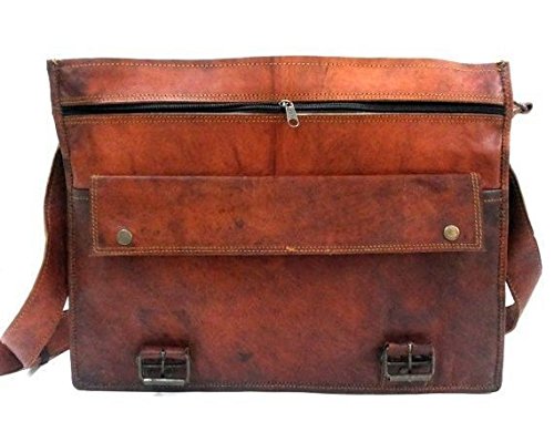 -. Title : 15" Vintage Brown Leather Messenger Shoulder Laptop Bag Briefcase Handmade Free Size