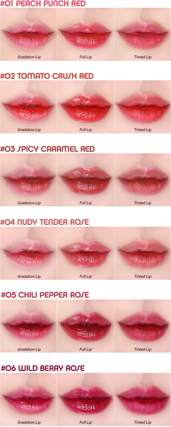 The water rising formula provides gloss up effect to the lips. Color pigments