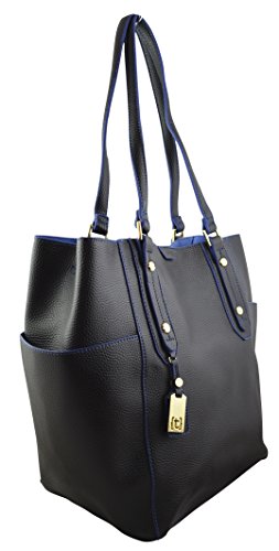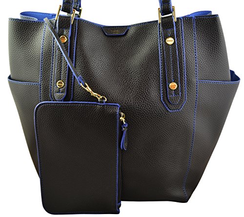-. Binding : Electronics -. Brand : Tutilo -. Color : BLACK-BLUE -. EAN : 0708325397927 -. Feature : Made with high quality manmade leather material. / Fits a laptop up to 15" x 10" ie; netbook, chrome book or tablet in open compartment / Organizational wristlet inside. / Soft inner lining / These double handles have a 12 inch drop length. -. Label : AE -. Manufacturer : AE -. Model : FEATURE DOUBLE POCKET TOTE -. MPN : FEATURE DOUBLE POCKET TOTE -. PartNumber : FEATURE DOUBLE POCKET TOTE -. ProductGroup : PC Accessory -. ProductTypeName : CARRYING_CASE_OR_BAG -. Publisher : AE -. Studio : AE -. Title : Tutilo Exclusive Elegant Work Tote, Sophisticated Business Women's Tote Bag With Wristlet- Blue -. UPC : 708325397927