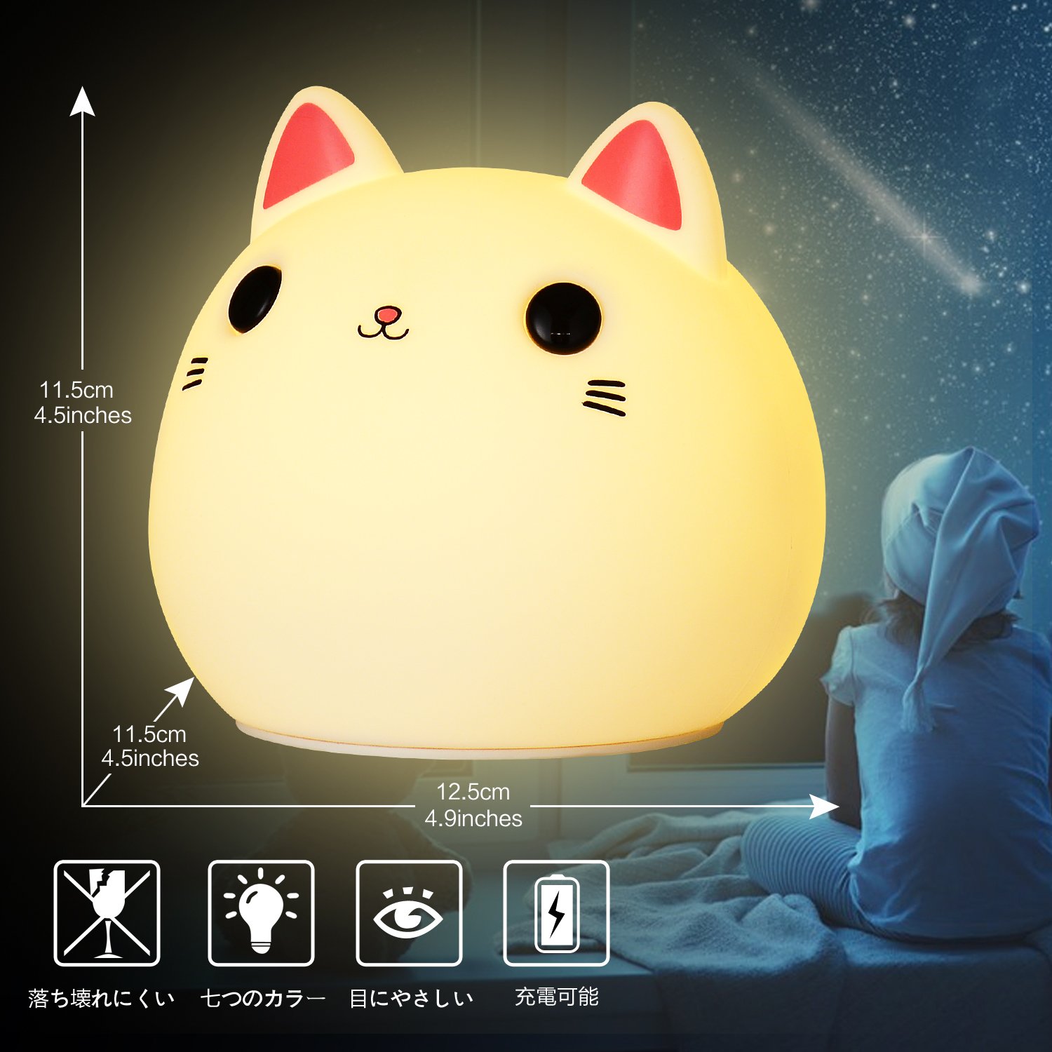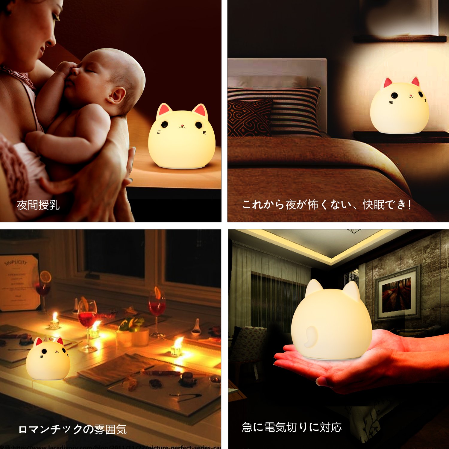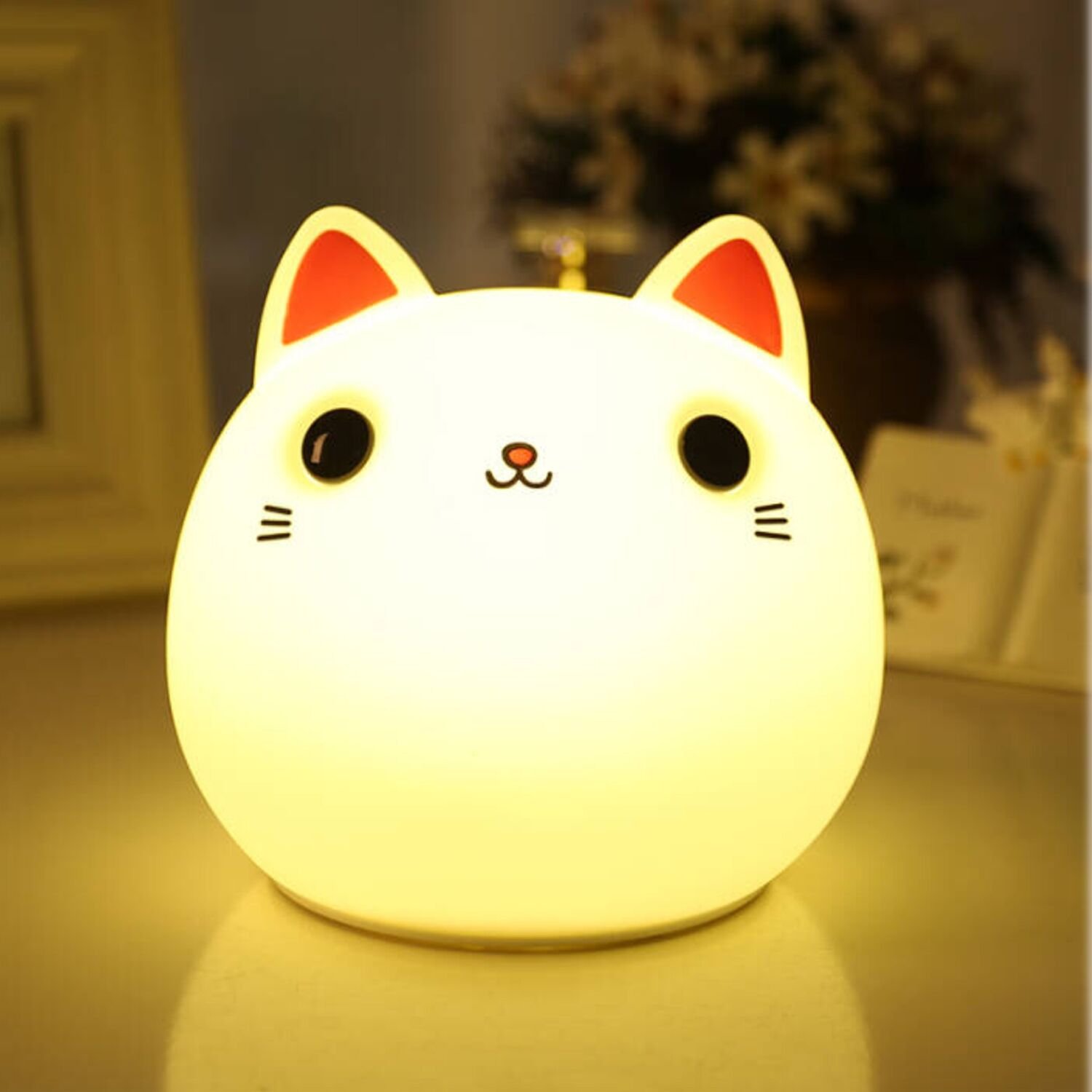 Cute appearance, soft touch, no strange odor cats Night lights choose food level silicon, do not worry about falling down.