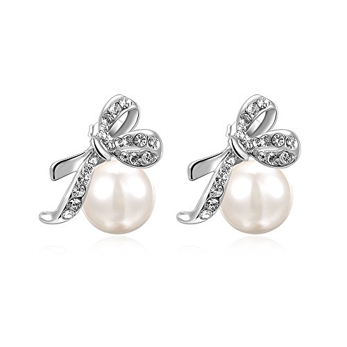 -. Title : GEORGE SMITH レディース 人気 18kゴールドメッキ ジルコニア パール 真珠 ピアス 2個 リボン付き