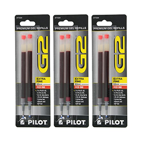 -. Feature : G2 writes longer than the average of the top branded gel ink pens / Fits G2; G2 Limited; G2 Pro; G6; Dr. Grip LTD.; Dr. Grip Gel; Precise Gel BeGreen; G-Knock BeGreen; Q7; B2P Gel Ink pens; ExecuGel and Pilot MR Gel Roller / Dynamic Gel Ink Formula that is smooth writing and smear-proof with a extra fine 0.5mm point / 2 premium Red gel ink refills per pack - Sold as 3 packs per order; total of 6 refills / Extend the life of your favorite Pilot Gel Ink Pen