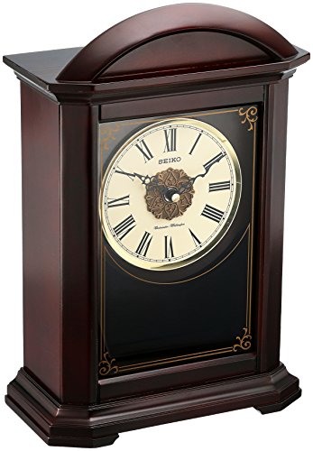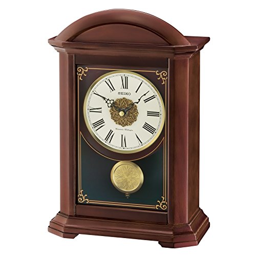 Stay on time with the Seiko Contemporary Classics Pendulum Mantle Clock. This mantle clock is created from wood with a traditional style. It chimes at every hour and quarter hour and the volume can be adjusted. This clock requires one C battery, which is not included. 14H x 10W x 4.25D in.. Wood construction. Dark brown finish. Rectangular shape. Features quarter-hour and hour chimes. Volume control included. Traditional and transitional style. Requires 1 C battery (not included).Feature