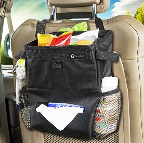 -. Feature : ► LEAK PROOF - The Zone Tech car organizer is leak proof. You don't have to worry about the coffee and food spills on your car interior. The car organizer can be used to dump your wrappers, tissues and unwanted trash but you can also spill your extra coffee, juice, water and the likes. / ► PRACTICAL - The Zone Tech car organizer is a must have for drivers & travelers alike. The Zone Tech trash bin is designed in a most practical way. The car organizer takes up minimal amount of space yet gives you full garbage capacity, without taking up all your legroom. / ► SMART DESIGN - The Zone Tech car organizer has a sP.R.Ing frame trash bag closure to keep the trash contained. It also features two mesh side pockets that work great for keeping bottles, drinks cups or containers as well as odds and ends such as chargers, pens, coins, baby toys, snacks, wipes and the likes. Furthermore, the tissue dispenser allows you to have a standard size box of tissue within hands reach when you're on the go instead of it being in the trunk or on back seat. / ► PREMIUM QUALITY - The Zone Tech car organizer is constructed out of premium quality red pack cloth that is reinforced with MDF fiber board to provide maximum strength and durability. / ► EASY TO USE - The Zone Tech car organizer is easy to use. With straps the litter bag can be easily fixed in position and with the quick release buckles removed just as easily.