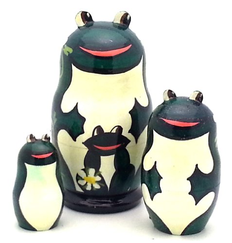 -. Title : Frog Russian Hand Carved Hand Painted Nesting 3 piece DOLL Set