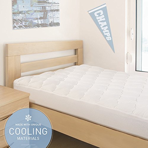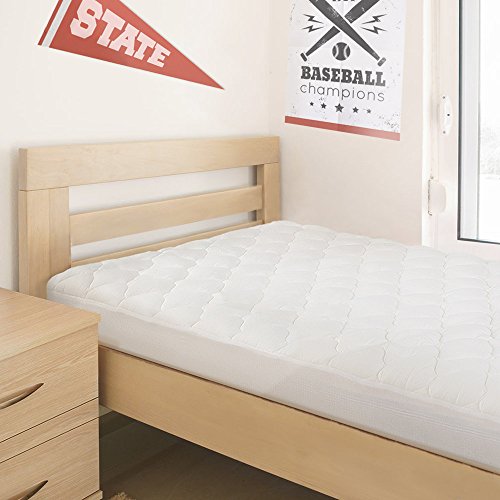 -. Title : Mattress Pad with Fitted Skirt - Hypoallergenic Topper for College Dorm Beds - Made in the USA, Twin XL