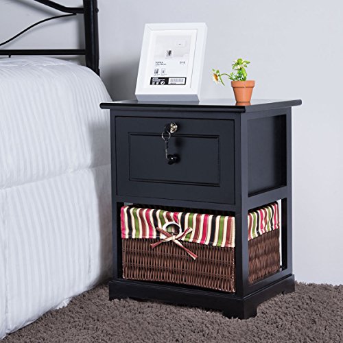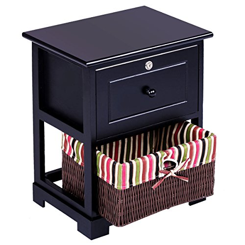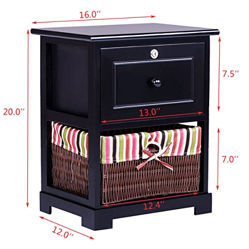 Description: Our Giantex elegant and durable wood nightstand featuring ample storage space and safe and stylish design. One drawer with locker and one capacious storage basket offer sufficient room for storage and are easy to access. Made of high-quality paulownia wood and handled with premium black painted, the nightstand is sturdy and durable.It will be a great addition to your bedroom and bring much convenience for yourfamily life. The black paint finish makes it easy to be cleaned with a dampcloth. It will be one of the best choices for you. Don't hesitate to buy itnow! Feature: Brand new and high quality Contemporary and open design, the black finish looks neat and tidy. Solid wood construction, durable and sturdy. It will enable the nightstand toserve longer time. Easy-glide drawer with pull for storage, and drawer lock to secure yourpersonal items One cute PVC basket on the bottom shelf provide additional storage Easy to clean and maintain Light weight design, it is convenient and easy for you to move it in yourbedroom. Specifications: Color: Black Material of frame: Paulownia Wood Material of top board: MDF Material of basket: PVC Overall size: 16'X12'X20'(LXWXH) Size of drawer:12'X 9'X7'(LXWXH) Size of basket:12.4'X10'X7'(LXWXH) Net weight:9.5lbs Weight capacity :176lbs Package includes: 1x 2-tier nightstand ? 0 |
