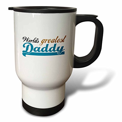 3dRose Worlds Greatest Daddy Blue Text on White, Fathers Day, Stainless Steel Travel Mug, 14-Oz
