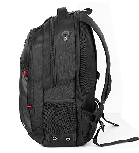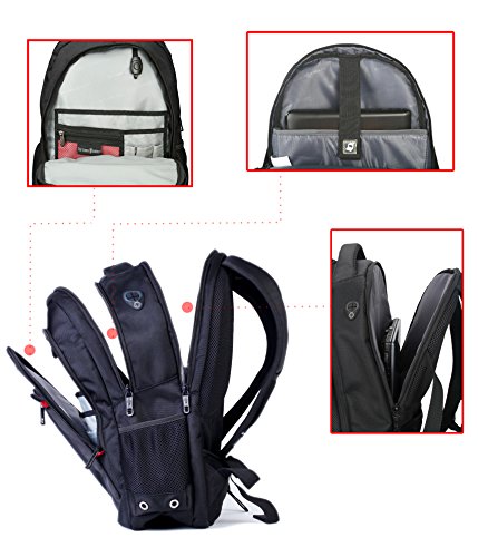 -. Feature : Interior organizer provides divider pockets for pens, pencils, cell phone and etc. Plenty of pockets to organize whatever you need to carry / Laptop/Tablet Compartment: The middle compartment holds upto 15.6" laptop and tablet, integrated mesh bag, mouse and AC adapter holders. Roomy to hold books, 1-2 binders and more / Rear Compartment: Integrated file slot for papers, holds an extra laptop/tablet with upto 16 inch screen / Padded shock absorbing shoulder straps and multi-panel airflow design provides extra padding for comfort and maximum back support / A padded strap allows backpack attached to lage handle for easy transport
