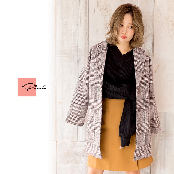 グレンチェックのボトムスと合わせてセットアップ風にも♪