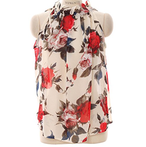 -. Feature : 上品なローズ柄が目を引くシフォン素材のセクシーなブラウス♡ / 首回りに通された細いシフォンのリボンで肩や胸元の開き具合を調節。ゆったりと緩めにすればセクシーなイメージ、きゅっと締めれば首回りに華やかなフリルが出来て大人可愛いイメージを演出できます。 / ほのかに透けるシフォン素材は、インナーとのコラボレーションを楽しむことができます。定番は白ですが、敢えて赤や青などの魅せ色をチョイスしてもステキです。 / ボトムインでもアウトでもキレイにまとまる絶妙な着丈に仕上がっています。無地のボトムやジャケット、カーディガン等のコーディネイトがよく合います。 / サイズ<M>胸囲112cm,着丈56cm/<L>胸囲116cm,着丈58cm