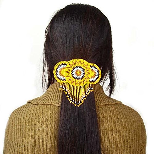 Barrette French Clip Yellow Beaded Rosette Fringe Beadwork Hair Accessories