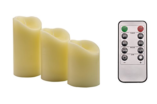 CandLE Daily Flickering Flameless Candles with Timer Remote Control 4 5 6 Inch set of 3 Real Wax Pillar Battery Operated LED Candle