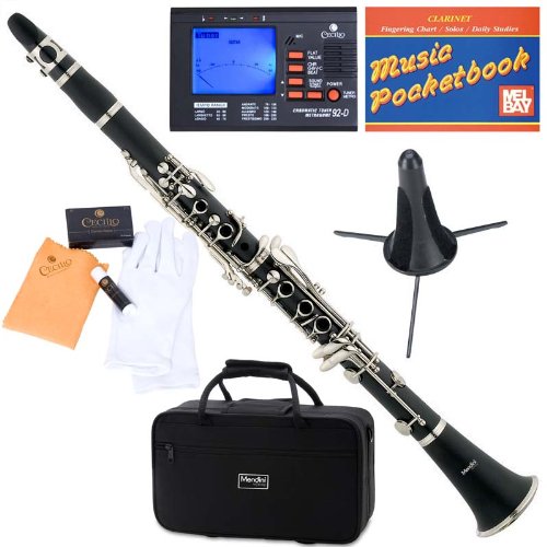 Product Description Mendini by Cecilio clarinets are the perfect instrument for the student / beginner musicians. Every clarinet is play tested at our overseas factory and re-checked at our Los Angeles distribution center to ensure that our high quality standards are met. This is why thousands of instructors have approved these clarinets. Package includes a pro-deluxe durable plush-lined nylon covered light weight hard case with backpack straps and zipper pocket, a mouthpiece with ligature and cap, a box of 10 reeds (size 2.5"), cork grease, cleaning cloth and a pair of white gloves. Buy with confidence as it comes with a 1- year warranty against any manufacturer's defects. 0
