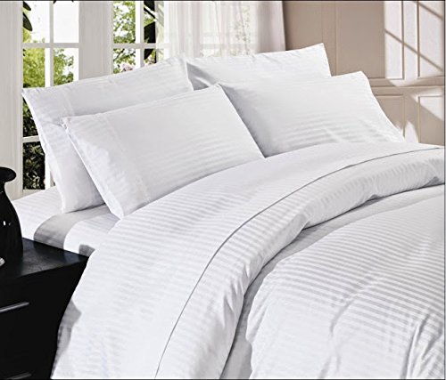 -. Title : Scala Egyptian Cotton 500-Thread-Count Super Soft Extra Deep Pocket Sheet Set Queen Stripe White Fit Up to 10" inches Deep Pocket