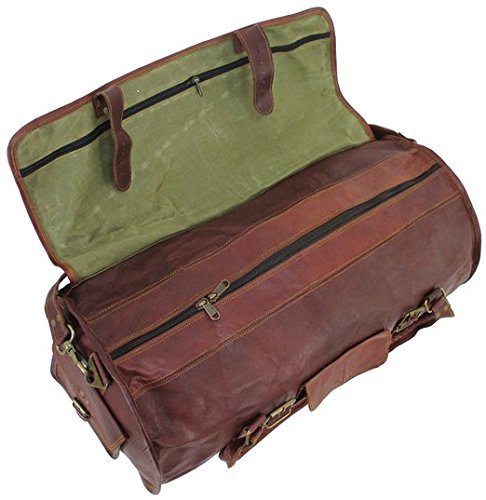 -. Brand : vintage crafts -. Color : brown -. EAN : 0635409778634 -. Feature : 100% Genuine Leather / Imported / Leather has been hand rubbed with vegetable and tanned naturally in the sun to give each hand crafted bag a rustic, naturally distressed, antique look and feel as well a natural resistant finish. The natural variation of leather as well as hand finishing gives each bag a unique texture and color tone, no two bags will look exactly the same. / 20" x10"x10" Dimensions , 52" Adjustable shoulder Strap with shoulder Pad, Handle Drop 12" (measurements approximant) / Full length protective leather flap across the top. Full length zipper closure underneath protective flap. Full length zipper pocket inside protective flap. Dual exterior zippered end end compartments. Exterior side pocket. Interior zipper compartment. Adjustable shoulder strap with shoulder pad. Fully lined with sturdy green canvas. -. PackageQuantity : 1 -. ProductGroup : Apparel -. ProductTypeName : LAGE -. Title : Vintage Crafts Genuine Leather Duffel Bag Leather Sports Duffel Bag -. UPC : 635409778634