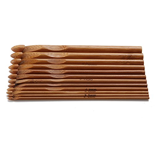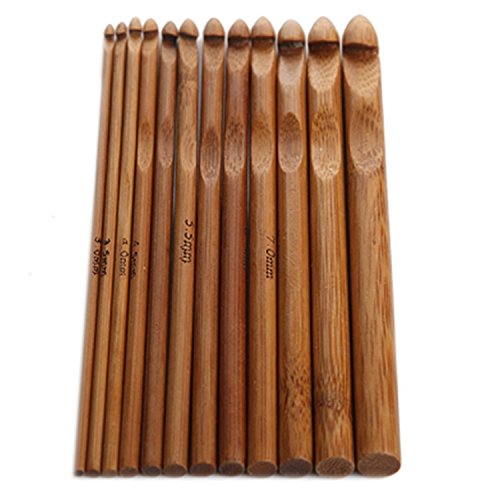 YazyCraft Wooden Bamboo Crochet Hooks set of 12 (3.0-10mm).