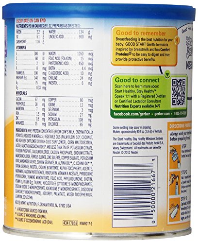 -. Feature : 12.7 Ounce containers, Pack of 6 - Makes 135, 4 fluid ounce bottles / Stage 1, birth-12 months: Modeled after the complete nutrition and gentleness of breastmilk with Comfort Proteins, small proteins for little tummies that are easy to digest / Our closest formula to breastmilk and is the only powder infant formula with a blend of DHA, prebiotics & probiotics, important components found in breastmilk / Non GMO: Not made with genetically engineered ingredients / Gerber is a leader in infant and early childhood nutrition. Have questions? We are awake when you are 24/7: 1-800-284-9501