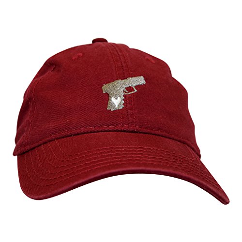 -. Binding : Apparel -. Brand : Bang Bang Apparel -. Department : womens -. Feature : p.i.s.t.o.l Embroided Gun with Heart on Grip; Embroidered in the USA / 100% Cotton Unstructured Soft Crown Low-Hat / 6-panel cap; Seamed front panel without buckram; 6 sewen eyelets / Pro stitch on crown; 6 row stich on crown; Matching fabric undervisor / Matching Color Sweatband; Matching Fabric Adjustable Strap with Metal Buckle -. ProductGroup : Apparel -. ProductTypeName : HAT -. Title : Bang Bang Apparel 'Gun Lover' p.i.s.t.o.l Embroidered Adjustable Dad Hat