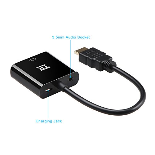 TechRise HDMI to VGA, Gold Plated High-Speed 1080P Active HDTV HDMI to VGA adapter Converter Male to Female with Audio and Mirco USB Charging Cable