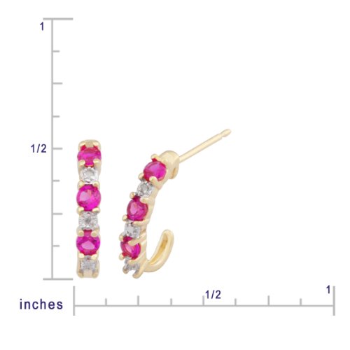 -. Title : 18k Yellow Gold-Plated Sterling Silver Created Ruby Half-Hoop Earrings