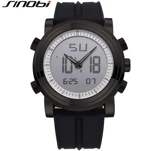 | [해외]SINOBI 남성 스포츠 시계 LED 디지털 디스플레이 남성 남성 시계 크로노 그래프 실리콘 밴드 캐주얼 손목 시계 신사 발광 시계 시간 |