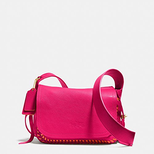 COACH DESIGNER DAKOTAH FLAP CROSSBODY HANDBAG IN POP LACING WHIPLASH LEATHER PINK RUBY/NEON ORANGE