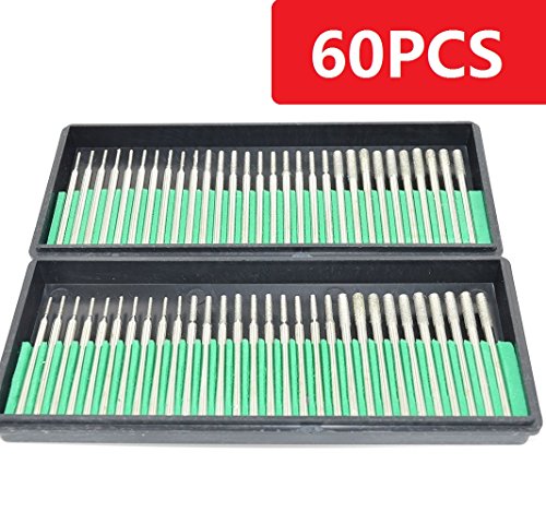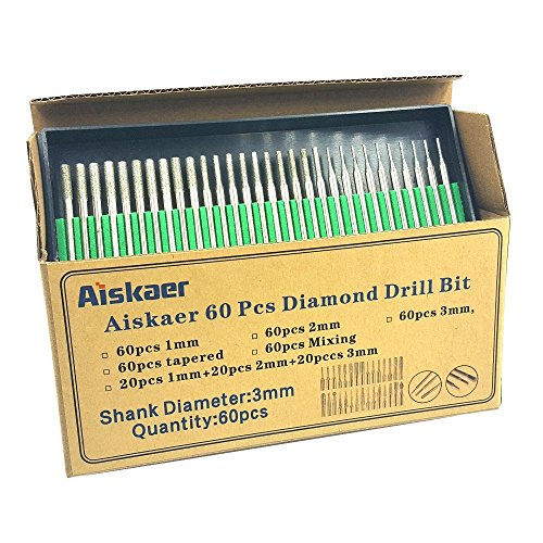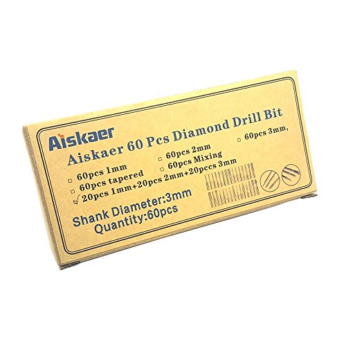 Aiskaer 60 Pcs Premium Diamond Drill Bit Cylindrical Burr Kit Jewelry Beach Sea Glass Shells Gemstones Lapidary.1mm 20pcs.2mm 20pcs.3mm 20pcs