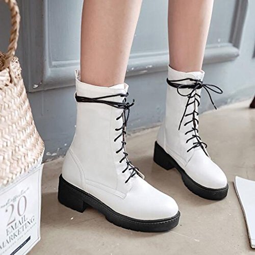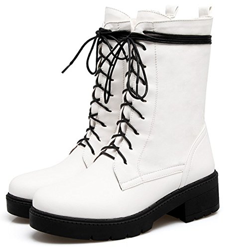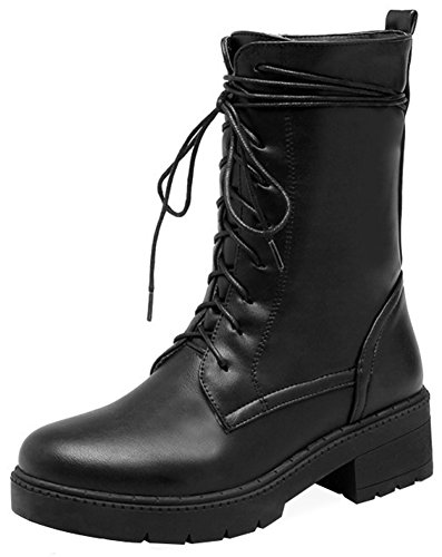 (Mofri)/Women's/Boots/DIRECT FROM USA/Mofri Women's Trendy Round Toe Medium Block Heel Platform Lace up Mid Calf Riding Boots