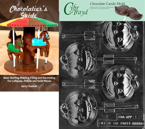Cybrtrayd "Large Pumpkin Lolly" Halloween Chocolate Candy Mold with Chocolatier's Guide
