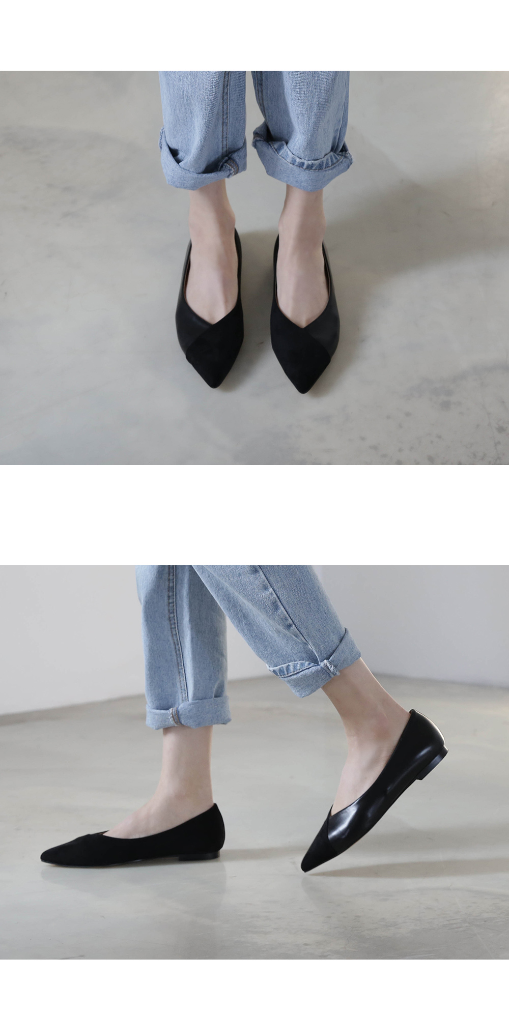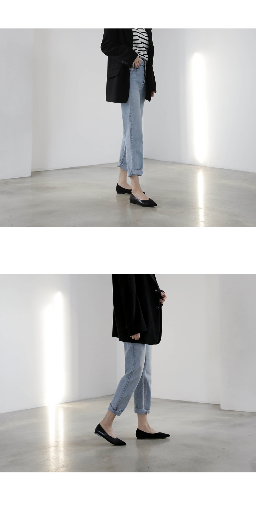 플랫 스타일로 슬랙스룩에도 스타일리시하게 신겨집니다.
