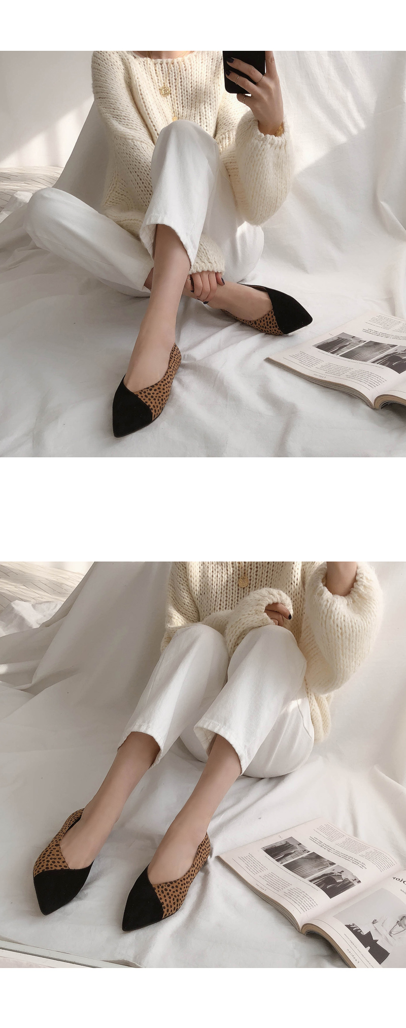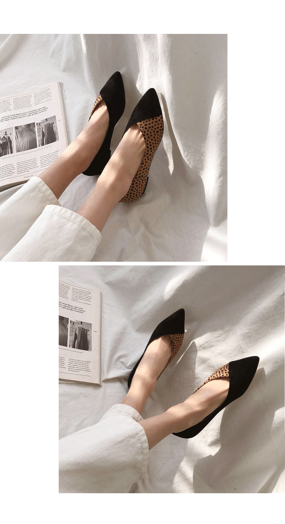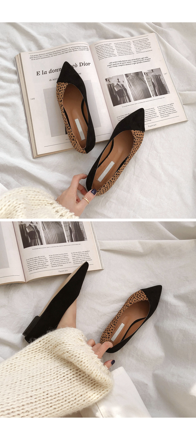 DETAILS - 소재 : 인조스웨이드 인조소가죽 인조스웨이드 - 컬러 : leopard,black - 피팅감 : 정사이즈 / 무게 : 보통인편 - 착화감 : 편해서 데일리 슈즈로 좋아요 - 모델피팅 : 235