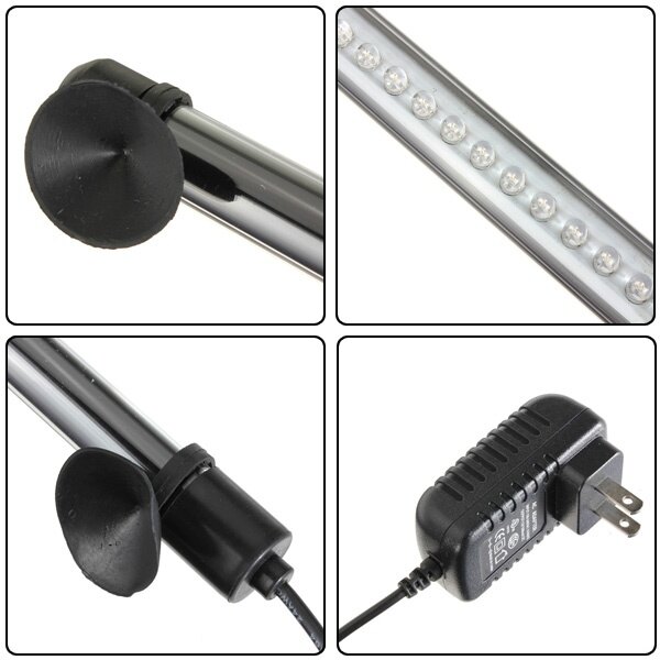 The light could be submerged entirely under the water or put it out of the water and two suckers help to fix strong in the tank.