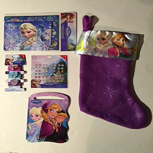 Disney Frozen Christmas Stocking - Stocking, Hair Ponies, Sticker Album Set, Board Book, Sticker Earrings