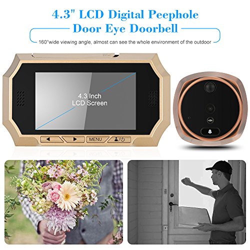 -. Title : KKmoon 4.3" LCD Digital Peephole Viewer 160° PIR Door Eye Doorbell Camera IR Night Vision Photo Taking/Video Recording for Home Security