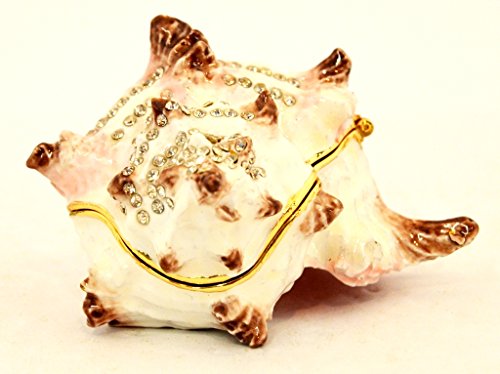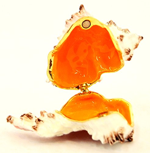 Ciel Collectables 1013384A Conch Shell Trinket Box with Hand Set, 3.75" x 1.75" x 2.75"