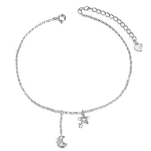 -. Feature : Environmental friendly high polished finish Genuine 925 Sterling Silver with Cubic Zirconia, this star and moon charms anklet bracelet shines with beauty and adds a luxurious look. / Size: about 190mm in perimeter; Star and Moon: about 20mm long; Chain Extension: 30mm. / A perfect accessory to your outfit or as an approP.R.Iate gift, e.g. for your Daughter, Lover, Girlfriend, Fiancee, Wife, Mother, Couple, Valentine or just a Friend,etc; Suitable for Valentine's Day, holiday, ball, party, anniversary, prom, graduation, birthday or any special occasions; Click on our Storefront for more stylish and newest jewelries. / Very cost-effective! / GIFT READY - It will definitely make a perfect and inexpensive gift for you!