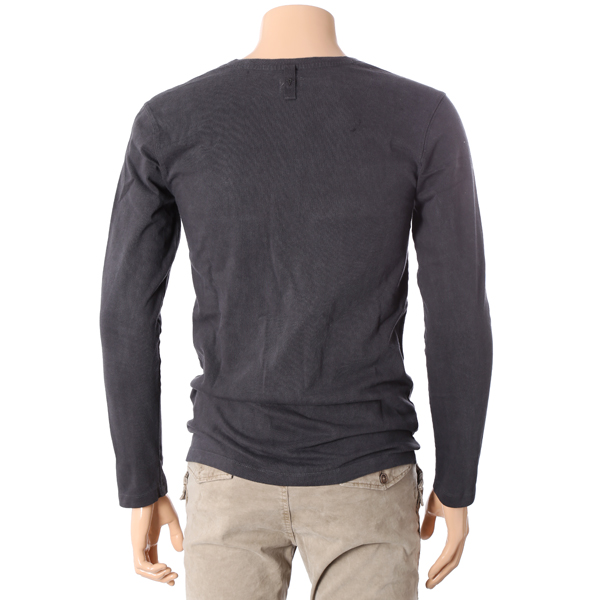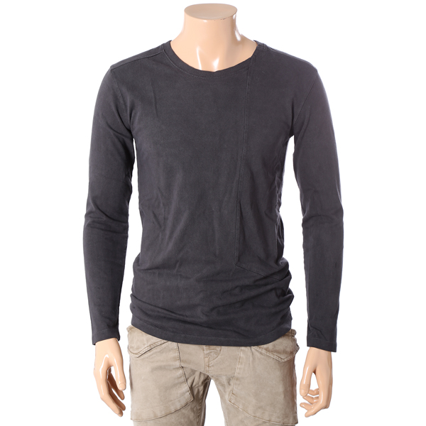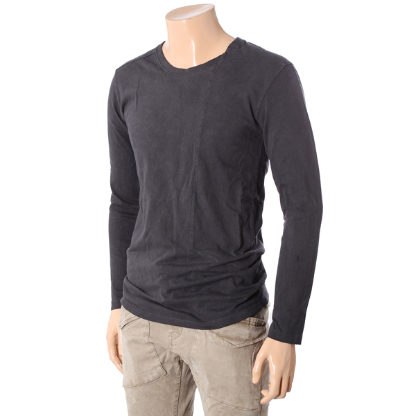 가먼트다잉 처리된 긴팔 라운드 티셔츠입니다.