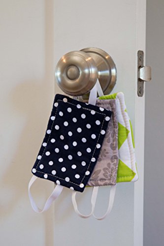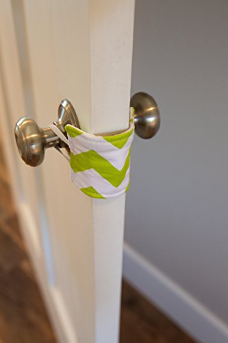 Have you ever tried to quietly open a door to sneak a peak at your sleeping baby; only to be busted by the sound of the latch as you turn the door knob? Shushies work to muffle the sound of the latch so that you do not wake your sleeping baby. Elastic bands fasten around the knobs on both sides of a door, securely covering the latch with a cushion.