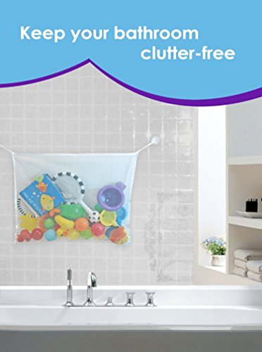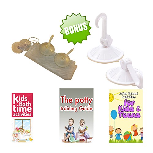 The bathtub Toy organizer dimensions are (17in x 14in) fits just about all of your bath toys. The mesh will stay close to your wall away from your path when not in use. Excellent Quality no-rip mesh maintains mold away.. 5 Bonus: one extra toy organizer for your second bathroom with three eBooks, include are 4 high quality suction cups provides you the opportunity to easily remove the bags off the walls at any moment, or to hang bathroom accessories . Note: The bathtub Organizer's suction cups are extremely powerful and Excellent Quality. However, suction cups are not meant to attach to a porous surface. the bonus ebooks will be delivered separately The Best Part of All: Customer support that will go above and beyond. We provide you with a 100% Money Back / Satisfaction Guarantee. If you happen to experience any problems with the bag or the suction cups, contact us and we will immediately do everything possible to satisfy your matters. The excellent feedback of our customer service is constantly growing. Click Add To Cart today to get this extraordinary solution for your existing or future bathrooms that will help you keep your tub or shower organized and clutter free. Buy one and get one extra bath tub toy organizer free for your second bathroom. 100% MONEY BACK GUARANTEE NO WORRIES!!. If you are not satisfied you can return the organizer bags the eBooks are yours to keep as gift 0 |