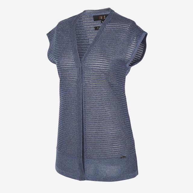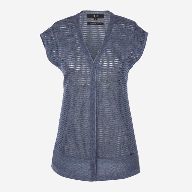 자수로 이루어진 펀칭 디테일로 유니크하며 다양한 이너와 함께 스타일링 하기 좋은 베스트입니다.