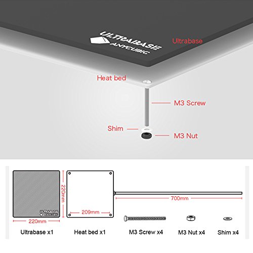 Anycubic Ultrabase 3D Printer Platform with Aluminum 12V/24V Dual Power MK3 Heatbed, Tempered Glass Plate, Durable Build Surface for Prusa i3 220x220mm